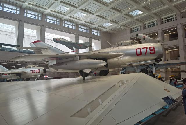 “兵器陈列”展区里主要陈列的是我国大型战斗机、武器和一些年代久远的飞行器,每个展品上的详细记载,让我们大饱眼福的同时,也扩展我们对军事武器了解。特别是人民解放军第一代对地战术导弹—东风一号以及抗美援朝中的功勋炮火给大家留下了极其深刻的印象。