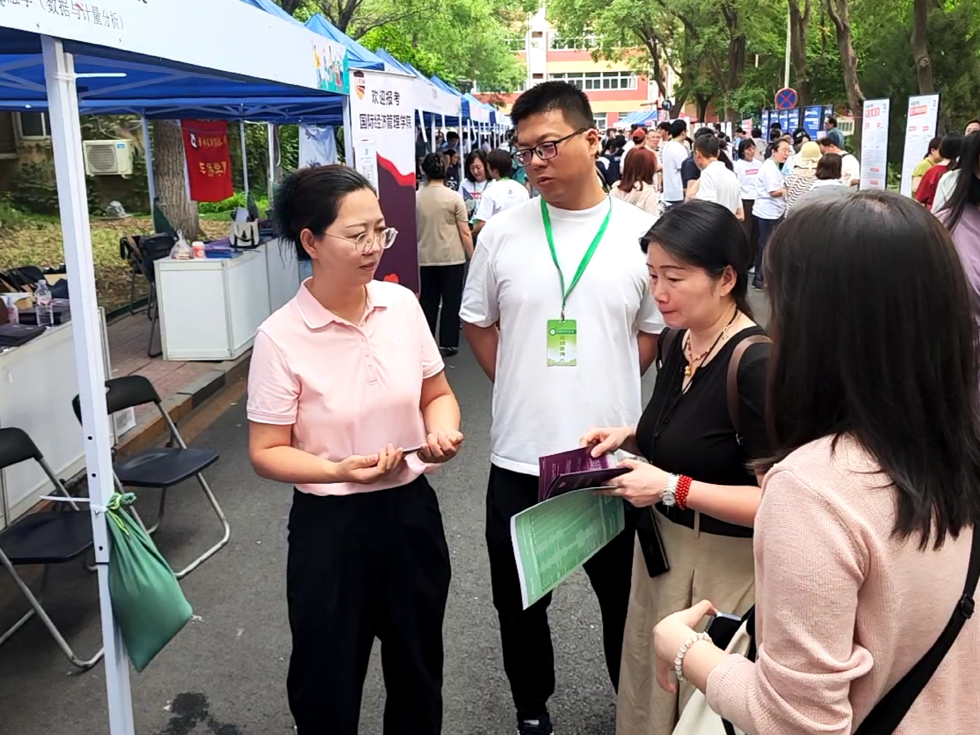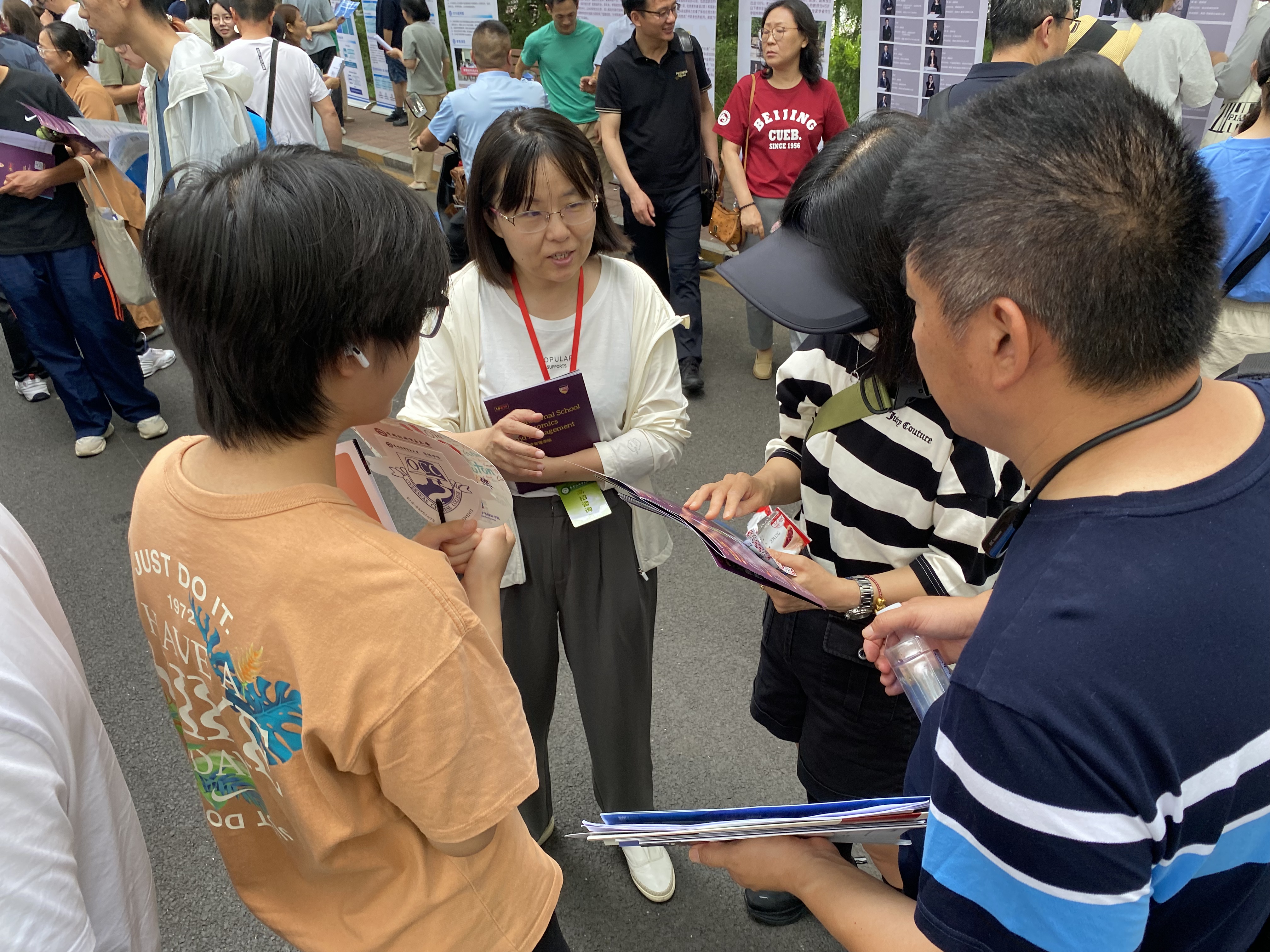 尽管天气炎热,但考生和家长的热情不减,足交 展台前咨询者络绎不绝。师生团队以专业、细致的态度,针对每位考生的具体情况,围绕专业特色、培养模式、国际交流、校园文化及就业发展等家长和考生的核心关切点,提供了个性化的解答和建设性的指导。足交 还提前准备了宣传展架、招生宣传册以及包含笔、本等足交 文创产品,分发给前来咨询的考生和家长。