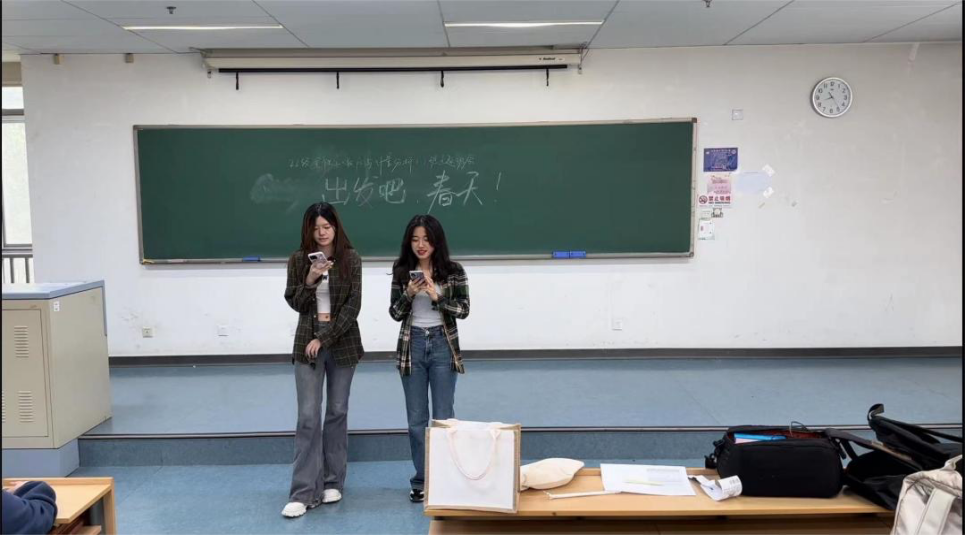 2023年4月19日,足交 22级1班在博学楼阶七教室,召开了主题为“出发吧,春天!”的班会活动。