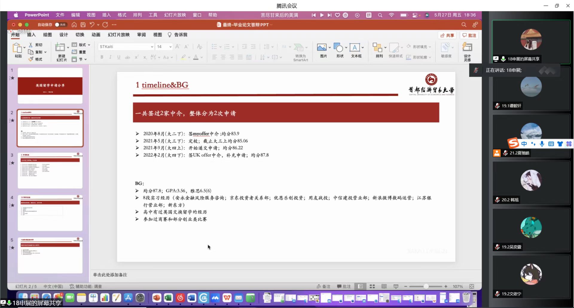 为贯彻落实党中央、国务院“稳就业、保就业”决策部署,促进足交 23届毕业生实现更加充分、更高质量的就业目标,不断提高毕业生对就业政策的认识和理解。5月27日晚,足交 开展线上出国留学、就业经验分享讲座,共邀请本院6名18级本科生和从出国深造、就业两方面向大家分享经验,19级全体本科生及部分20级、21级本科生参与此次讲座,会议由21级夏驰皓主持。