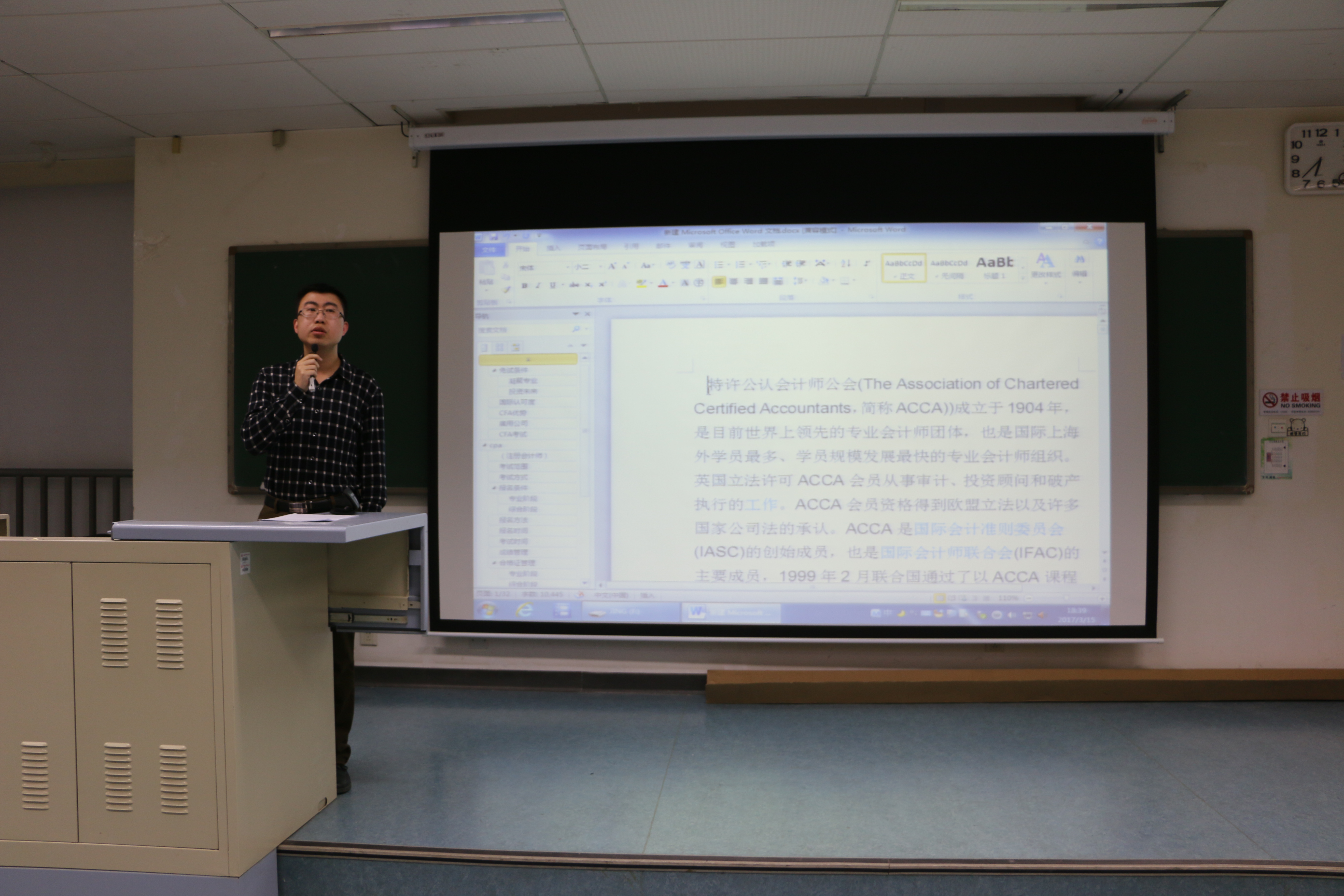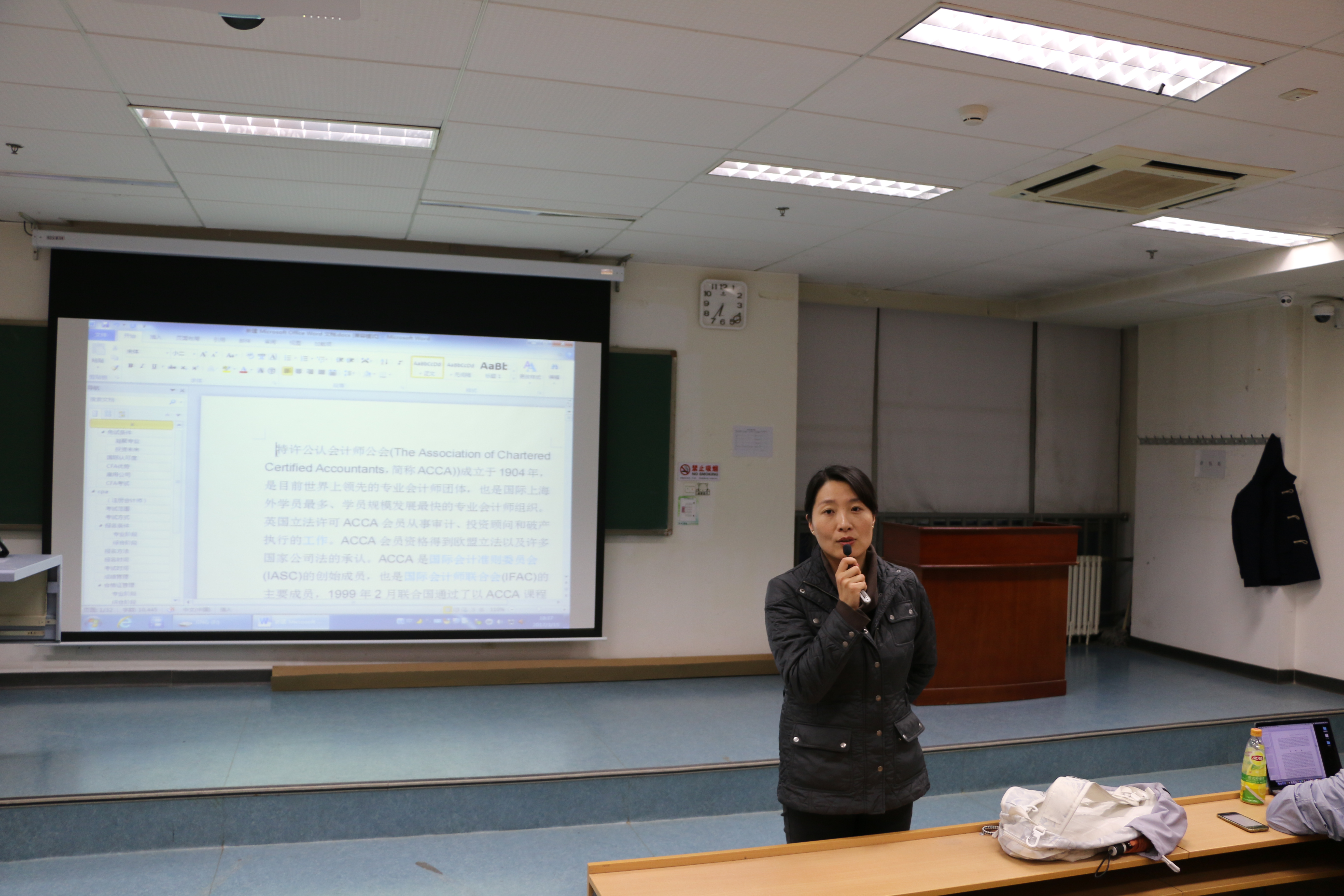 在博学楼阶6教室为全体大一学生举办了了关于会计从业考试的讲座。特别邀请了财务处王琼老师,为同学们详细地介绍了与会计从业相关的一些考试信息。讲座由足交