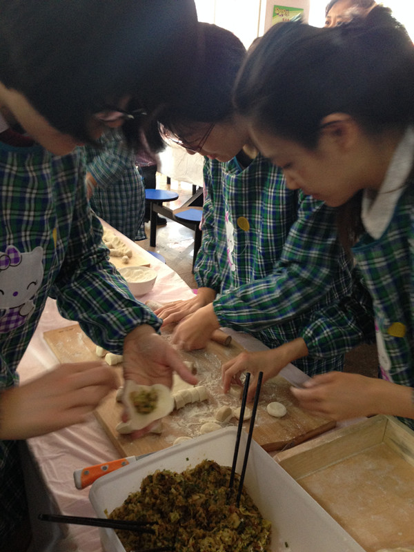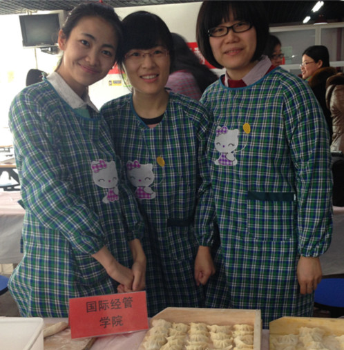 2014年校工会组织的三八妇女节包饺子比赛是足交 分工会成立以来参加的第一个全校性活动。3月5日早上,足交 的三名参赛队员苏志、王超、金湜在9点前到达比赛地点——第三食堂一楼,为比赛积极做准备工作。大家一到会场就把外套换下,把工会配发的围裙穿上。王超从家里带了擀面杖、擀面板和切面刀,可谓是万事俱备,只欠面团和饺子馅。安置好包饺子工具,三人开始商量分工,苏志负责切面块和包饺子,王超负责对体力、技术、速度要求较高的擀面工作,金湜负责把方形面块压成圆形面块和包饺子。当三位参赛队员在商量战术的时候,忽然发现足交 的陶乾老师也来到了比赛现场,特地为她们加油助威来了!队员们很受鼓舞! 当比赛开始的时候,三位队员按照既定战术有条不紊的开展工作。只见王超滚起擀面杖,一块块厚薄适中的饺子皮在她手中迅速成型;金湜和苏志拿起饺子皮放入比赛特制的饺子馅,一刻也不懈怠的包起饺子,为了使饺子美观,她们还认真的捏起饺子褶。陶乾在一旁给参赛队员加油助威,并帮忙数包好的饺子,不停的给她们报数。可是很快,队员们发现自己包饺子的速度落后于其他队伍,于是马上调整战术,开始包小饺子同时减少褶饺子工序。几分钟内,包好的饺子数量迅速增加,陶乾不停的倒数,还差10个,8个,6个….!终于,100个既美观又薄皮大馅的饺子包好了!大家马上举手示意裁判检查。 虽然这次比赛足交 没有拿到任何奖项,但是在场的工会成员都很开心,重在参与,包个饺子庆节日!