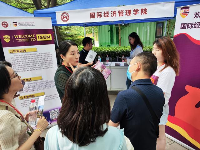 6月11日上午,足交 在校本部慎思路开展2023年校园开放日活动,向来访家长和考生介绍足交 情况。党总支书记曾庆梅、教学副院长高静、副书记王美慧、副院长李委明,以及高逸尘、郑伟男和学生代表参加了本次招生宣传活动。