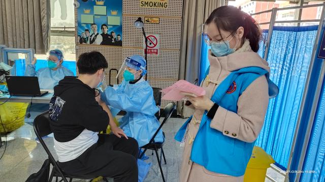 接种工作的高效开展离不开志愿者们的细心引导。接种当天上午,本院共有10名同学自愿报名参与疫苗接种志愿服务。志愿者们提前到达场地踩点并熟悉流程。接种过程中主要负责秩序引导,辅助信息登记,接种流程引导,留观区、应急处置区引导,留观时间核准等工作。志愿者们服务贴心周到,态度饱满热情,受到一致好评。