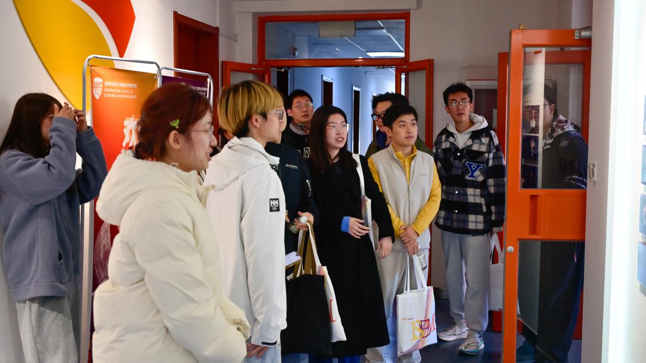 座谈后,志愿者带领校友参观诚明楼三层足交 文化墙,细致讲解院徽图标精神理念与“鲸”文化“深潜致远、逐梦远洋”的深刻内涵,让校友们深切感受足交 文化传承与发展活力。