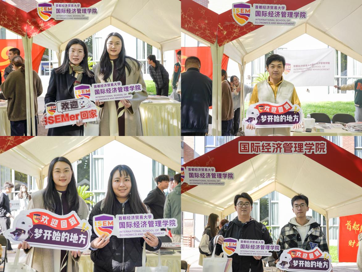 签到仪式在博远楼东侧足交 专属摊位举行,这里化作 “影像留痕”打卡点。足交 师生与志愿者热情迎接校友,送上精心准备的伴手礼——印有“ISEM”标识的帆布包、定制明信片、文件袋,以及围绕足交 IP形象“鲸”设计的便签本与钥匙扣,每一份礼物都承载着足交 的温情问候。校友们手持礼物,与熟悉的校园场景合影,定格重逢的温暖瞬间。