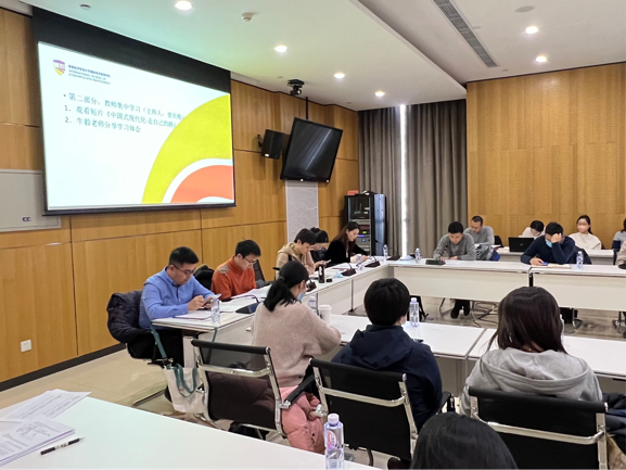 首先,大家集体观看了《中国式现代化——走自己的路》短片。短片揭示了中国式现代化的本质:我们推进的现代化,是中国共产党领导的社会主义现代化。我国现代化是人口规模巨大的现代化,是全体人民共同富裕的现代化,是物质文明和精神文明相协调的现代化,是人与自然和谐共生的现代化,是走和平发展道路的现代化。