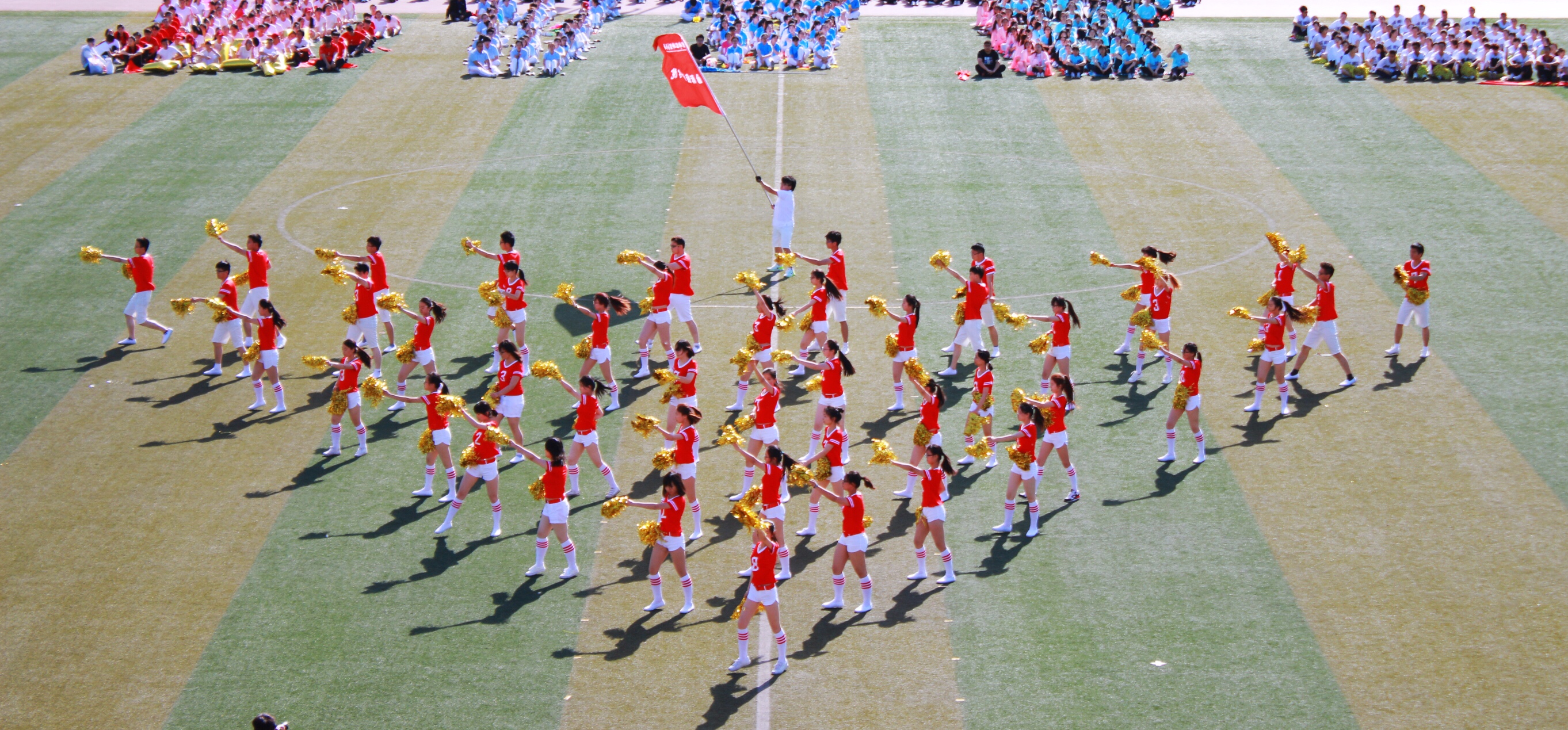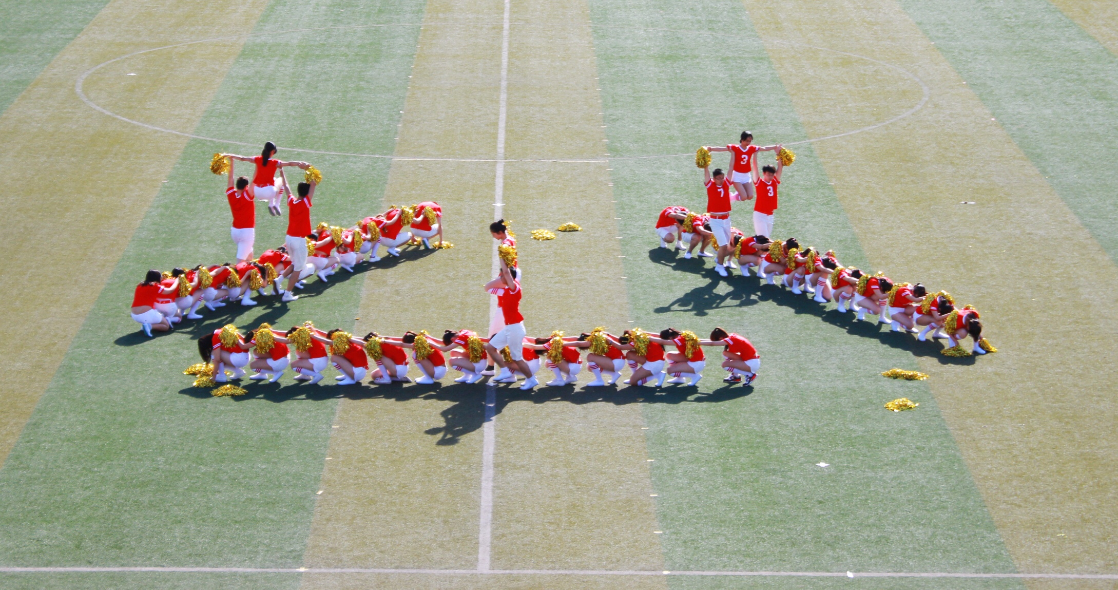 学子是在团体操比赛中首次亮相,他们身穿红白队服,手握金色花球,活力四射,青春洋溢。热情微笑的面庞之下是他们勇往直前的自信、整齐有力的动作背后是他们日夜拼搏的精神、漂亮多变的阵型蕴含着他们巧妙智慧的设计。表演的结尾,他们摆出“ISEM”的字型,展现出他们身为国际经管人的热爱与自豪。