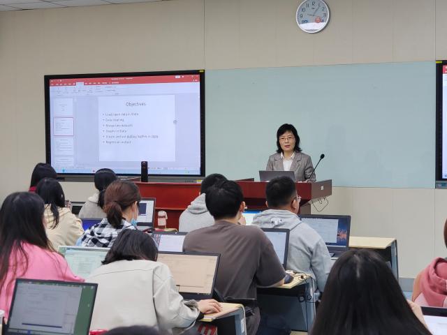 为夯实足交 本科及研究生科研软件应用基础,足交 于2021年10月14日,在慎思楼120智慧教室开设STATA软件操作培训班。培训课程由副教授王超老师主讲,足交 共43名本科及研究生参加。本次课程由足交 院长助理李委明主持。