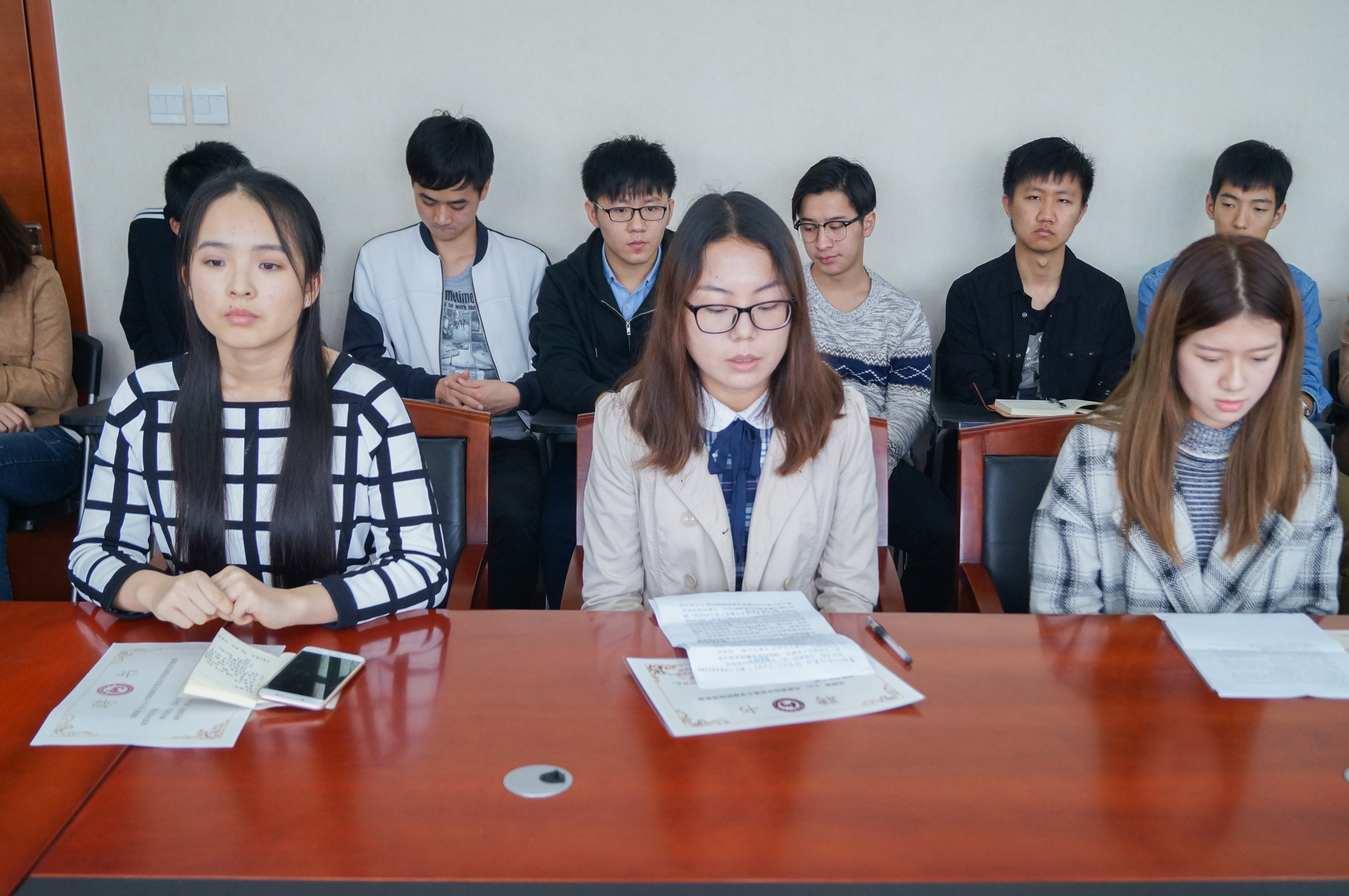 会上,研究生党支部书记聂苗苗、本科生党支部书记黄倩倩、研究生会主席李邵琛、本科生学生会主席李子璇、直属团支部副书记王妍、志愿者团团长陈田运子分别做就职发言。几位学生干部都提出了对未来工作的期望,本着为学生、为足交
