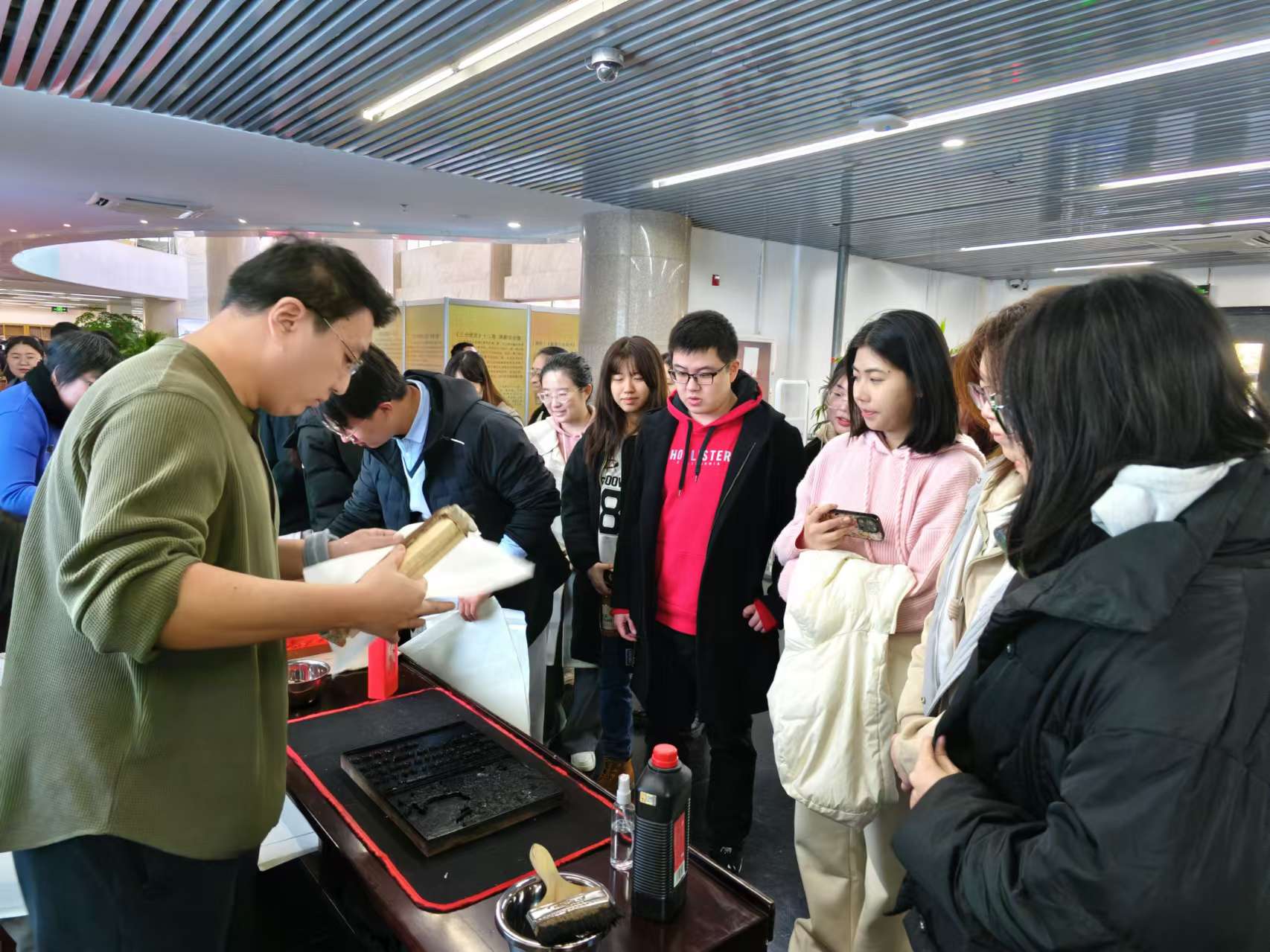 为进一步激发学生党员对优秀传统文化的关注和热情,11月5日下午,足交 学生党支部结合我校图书馆特藏资源宣传活动,开展了“古籍保护课堂进校园”主题党日活动,组织部分学生党员和入党积极分子于图书馆主楼二层大厅参与雕版印刷术体验活动,参观中国民族典籍文化展。