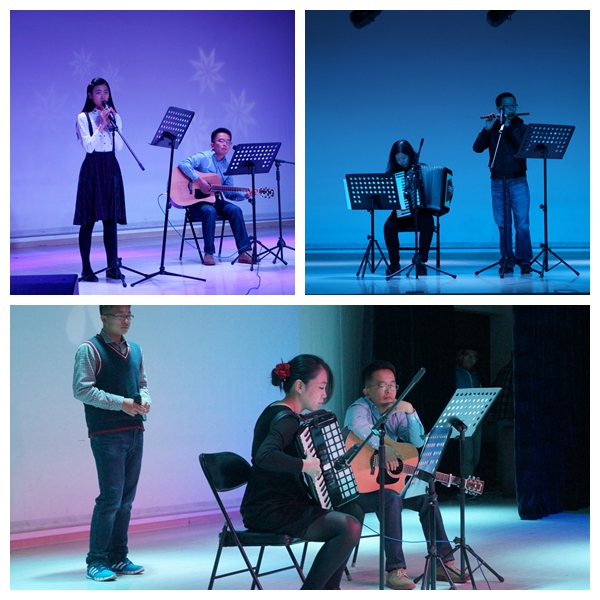 的教师们也一展风采,用歌声与舞蹈表达着对新同学们到来的热烈欢迎。由金湜老师和苏立老师带来的《哪些花儿》和《执迷不悔》吉他弹唱律动着青春的音韵,拨人心弦;雷露老师和徐敬尧老师带来的《梁祝》诉说着委婉漂泊的神话故事;高静老师弹奏的肖邦《幻想即兴曲》演绎了起伏跌宕的天籁之音;高静老师、张婷婷老师、苏力老师与郭麟枫同学共同演绎的《贝加尔湖畔》为在场观众描绘了一幅月色下、湖畔边的浪漫立体画;沈牧龄老师带来的肚皮舞《Ojos Asy》则时而优雅神秘、时而妩媚娇柔;所有的节目在尚英老师风趣幽默的主持下,灵动活泼,让台下观众耳目一新,掌声连连。