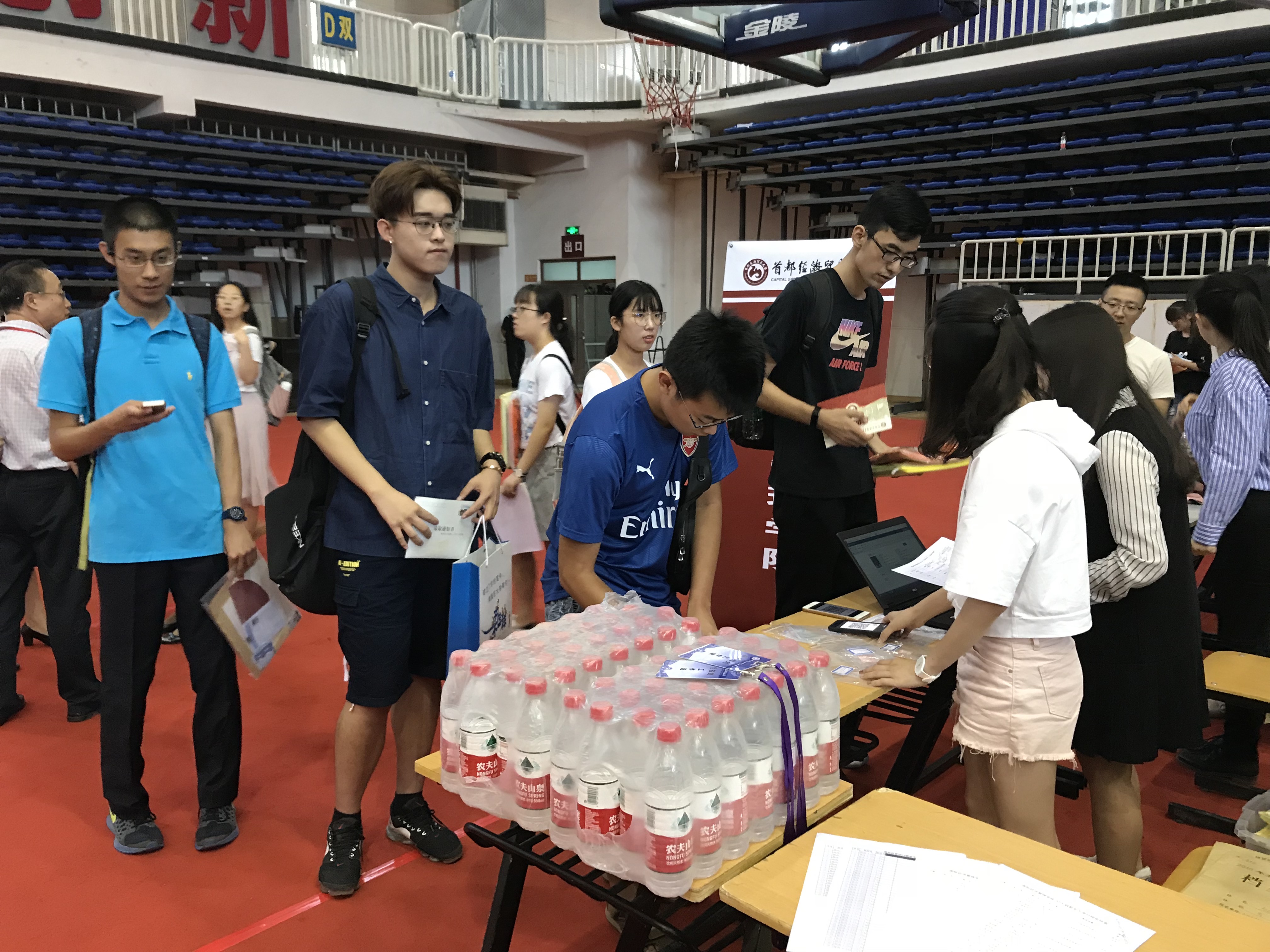 八点整,新生们正式入场报到,2018级的新生精神状态饱满,怀着难以抑制的激动向往的心情,早早的来到体育馆前排队等候。在志愿者的引领下,按照流程逐项进行。首先到足交