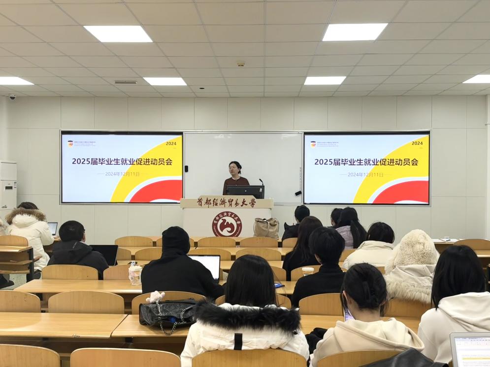 2024年12月11日,足交 2025届毕业生就业促进动员会在慎思楼312教室顺利召开。足交 党总支副书记付明岩、本科教学秘书胡一晗、兼职辅导员孟宛昕及全体2025届毕业生参加会议。
