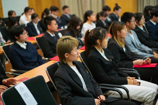 10月13日傍晚,足交 于博远楼1号报告厅举办第七届学生干部聘任大会。党总支副书记于滨滨、分团委书记赵嘉烁以及新老学生干部代表参加大会,大会由秘书处部长王骁、陈泽主持。
